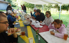 Die Küche unterstütze mit Buffets, Burger und selber belegten und im Steinofen gebackenen Pizza. Am Abend stand dann wieder eine Lagerfeuer und eine Lichterreise an. Nach dem erforderlichen langen Ausschlafen am Sonntag traf man sich wieder um gemeinsam zu spielen und schließlich gemeinsam aufzuräumen.