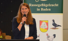 Frau Dr. med. vet. Schwarzmaier, Amtsleiterin für Veterinärwesen und Lebensmittelüberwachung im Schwarzwald-Baar-Kreis erläuterte, dass Zucht vom Beurteilen, Vergleichen und Austauschen lebt. "Ihrem Engagement ist die genetische Vielfalt zu verdanken und dass Rassen nicht verloren gehen."